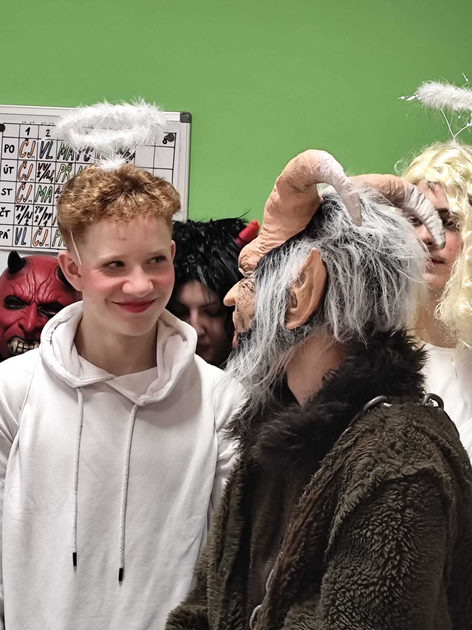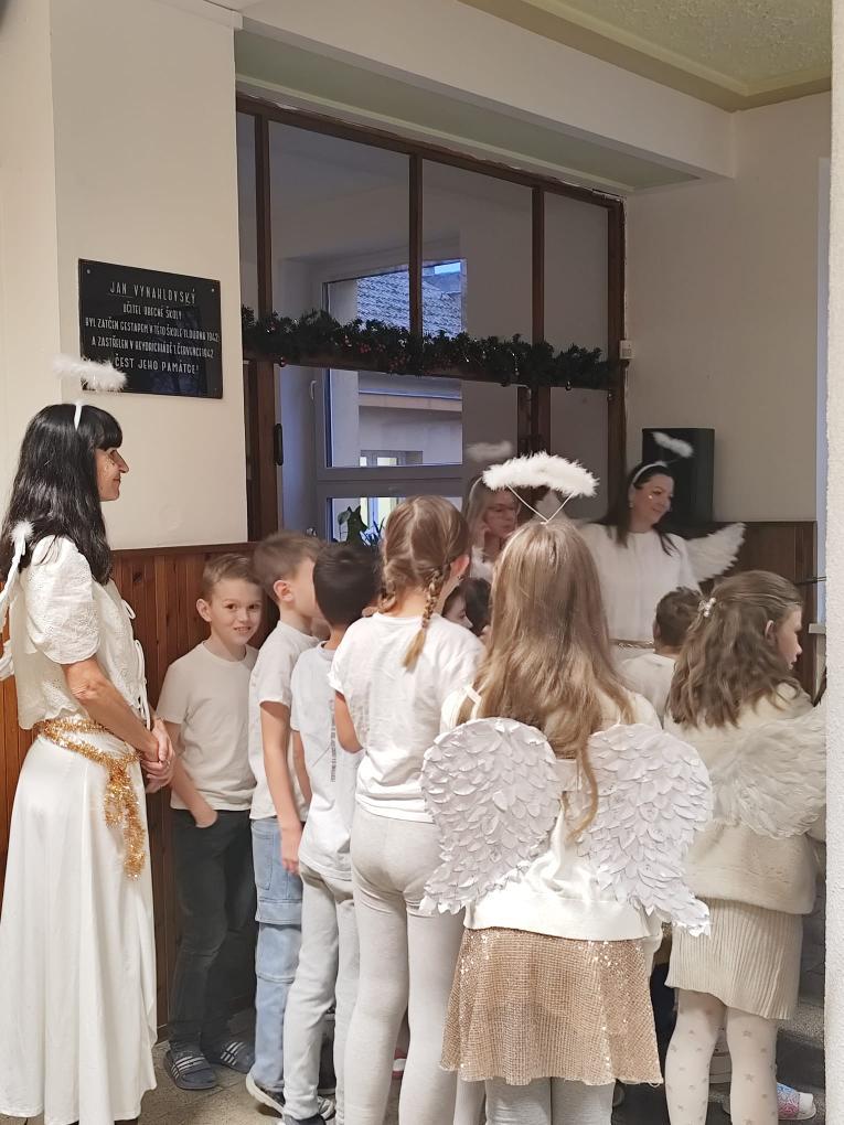 Stejně jako v minulých letech se úkolu andělské nadílky ujali žáci devátých tříd. Oblékli se do tradičních kostýmů, rozzářili chodby školní budovy a během dopoledne navštívili všechny třídy. Malým i velkým školákům rozdávali sladkosti, které jim vykouzlily úsměv na tváři a připomněly nadcházející mikulášské tradice.