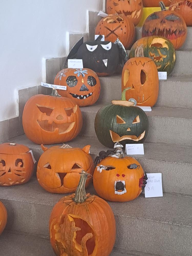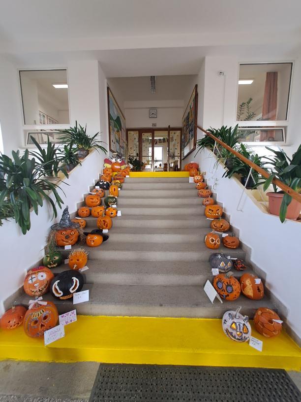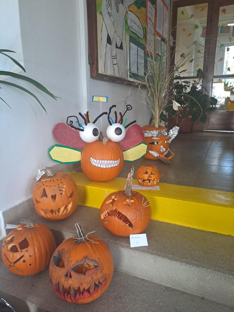 Už ve čtvrtek před akcí proběhlo ve škole vyhodnocení soutěže o nejkrásnější dýni. Žáci se s velkou chutí pustili do tvoření a vznikla spousta originálních a nápaditých výtvorů. Tyto dýně pak putovaly přímo na obecní akci, kde se staly součástí výzdoby, která dodala celé Halloweenské sobotě tu pravou strašidelnou atmosféru.