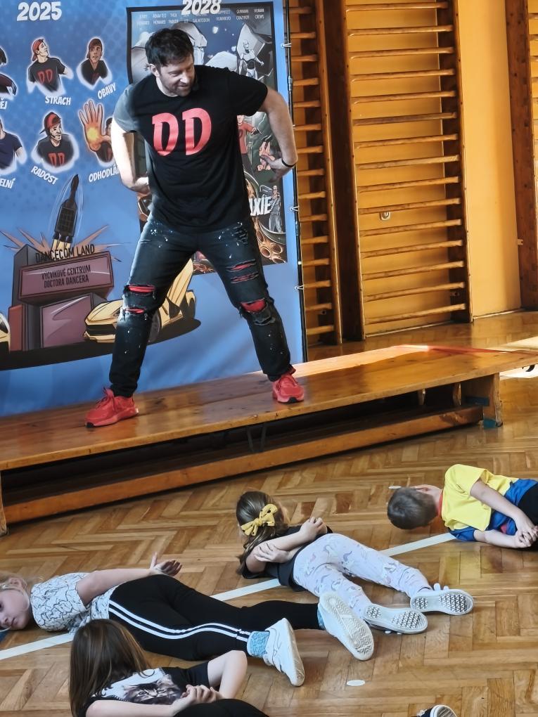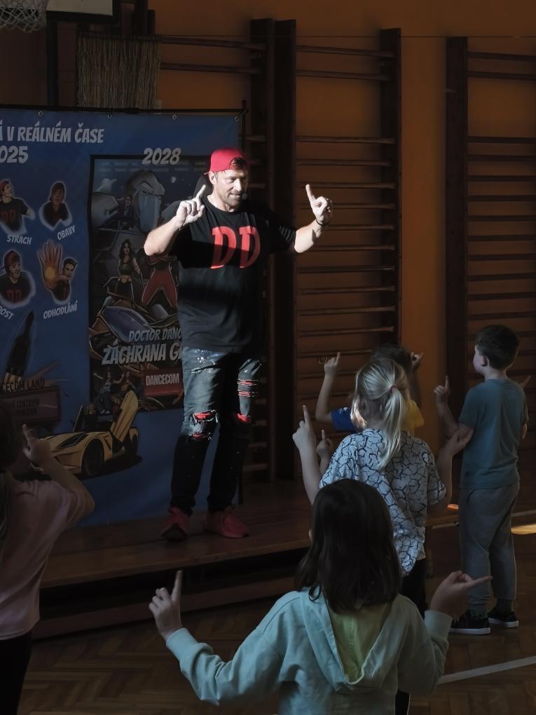V pondělí 10.11. 2025 proběhl ve ŠD zábavně pohybový program s tanečníkem Dr.Dencerem. Všechny děti se nechaly strhnout rytmem. Kombinace hudby, pohybu a humoru vytvořila nezapomenutelný zážitek. Byla to hodina plná energie, rytmu a dobré nálady.